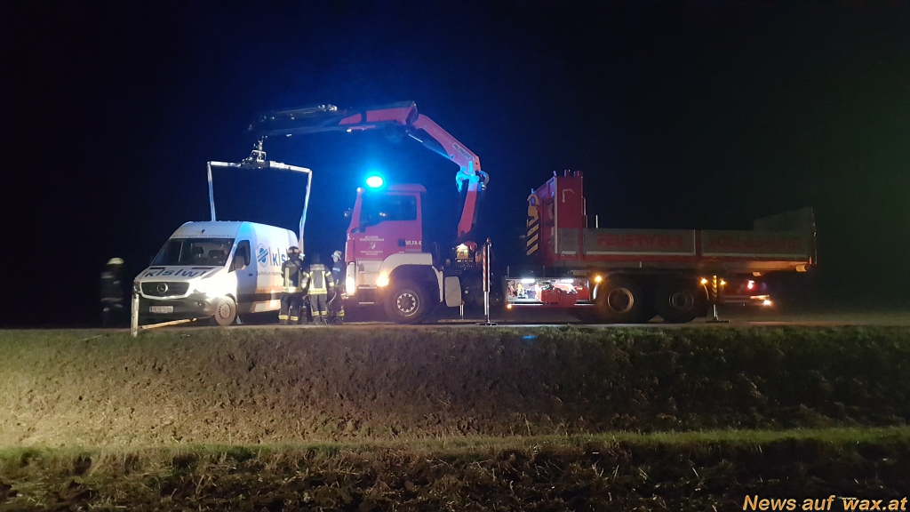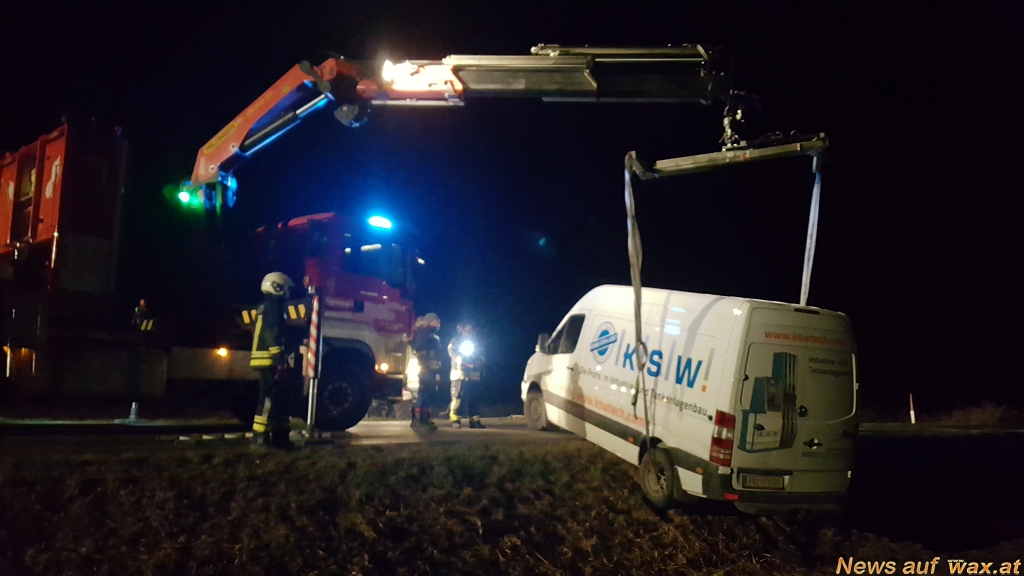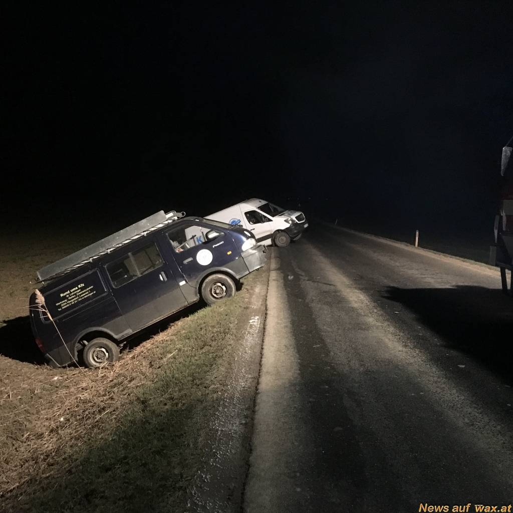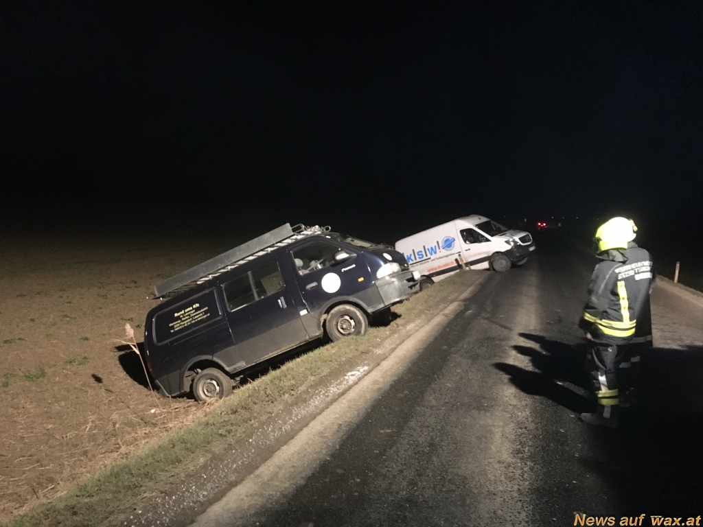 In der Nacht auf Donnerstag kamen aus unbekannter Ursache zwei Kastenwägen von der Fahrbahn von Sitzendorf Richtung Niederschleinz ab. Dabei rutschten sie rückwärts in den Straßengraben und blieben hängen. Nach der Absicherung der Unfallstelle konnte mittels Seilwinde des Rüstlöschfahrzeuges der Feuerwehr Sitzendorf ein Fahrzeug geborgen werden. Um eine schonende Bergung des zweiten Kastenwagens zu garantieren, wurde das Wechselladefahrzeug der Feuerwehr Hollabrunn alarmiert.