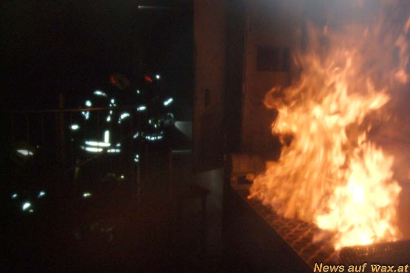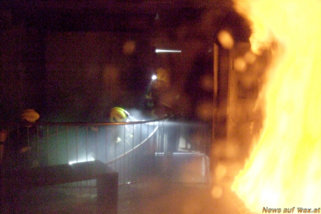 Im Rahmen dieser Ausbildung musste ein Innenangriff mit Menschenrettung im 1. Obergeschoss durchgeführt werden. Auf dem Weg bis zur vermissten Person erwartete die Teilnehmer mehrere Brandstellen. Unter ständiger Beobachtung von HBI Christian Bartl, HBI Markus Hauer und ASB Markus Koller durchquerten die Atemschutzträger bei mehreren hundert Grad das Übungshaus. Zuerst musste ein Küchenbrand im Ergeschoss bekämpft werden, um danach über eine Treppe das brennende Wohnzimmer im ersten Stock erreichen und löschen zu können. Die Brandbekämpfung wurde teilweise durch starke Sichtbehinderung sowie einen sogenannten Flashover beim Betreten des letzten Raumes erschwert. Nachdem die einzelnen Trupps die Übungspuppe unter schweißtreibender Anstrengung im Schlafzimmer gefunden und aus dem Gebäude gerettet hatten, führte der begleitende Ausbilder eine kurze Nachbesprechung mit den Truppmitgliedern durch.