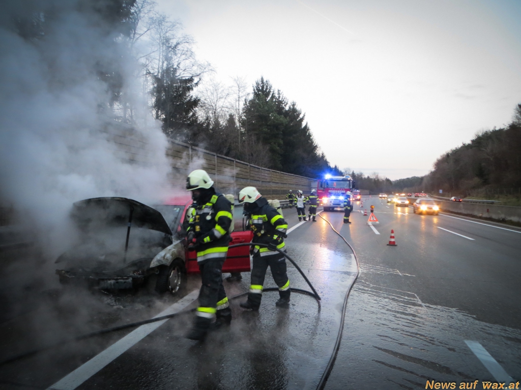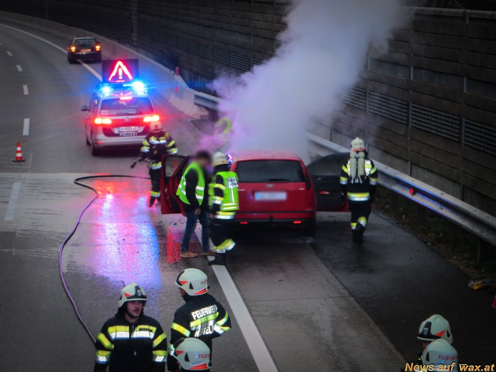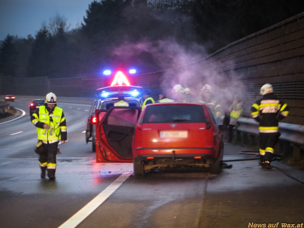Fahrzeugbrand auf der A2 Südautobahn, die beiden Insassen konnten sich noch