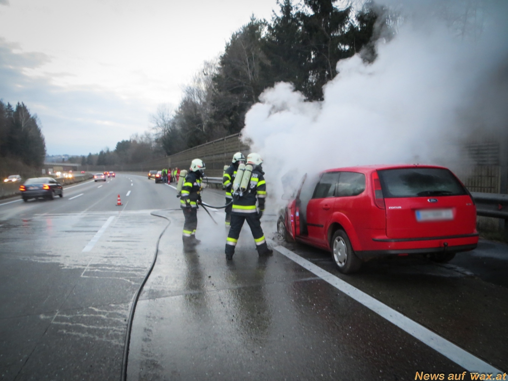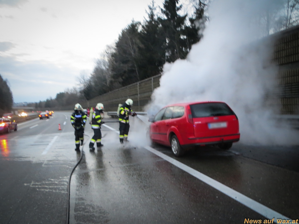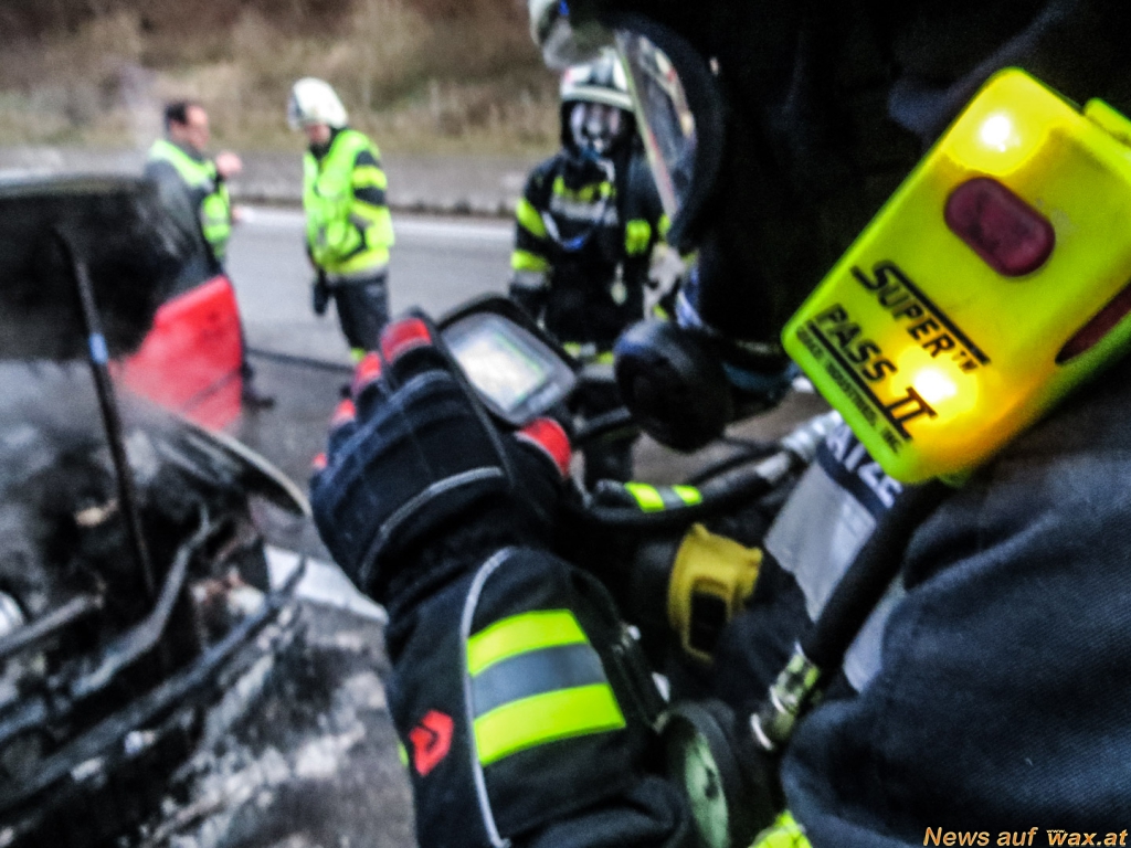 (Wasser-Schaumgemisch) durch. Rasch konnte der Fahrzeugbrand unter Kontrolle