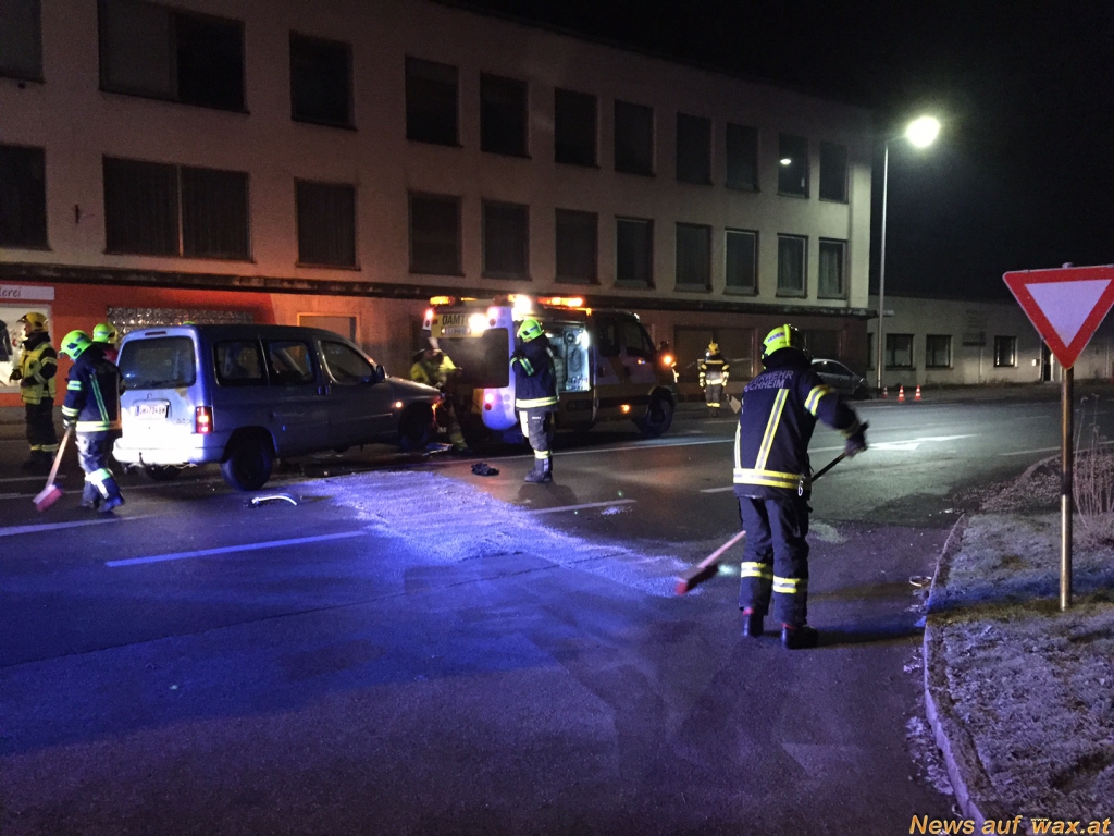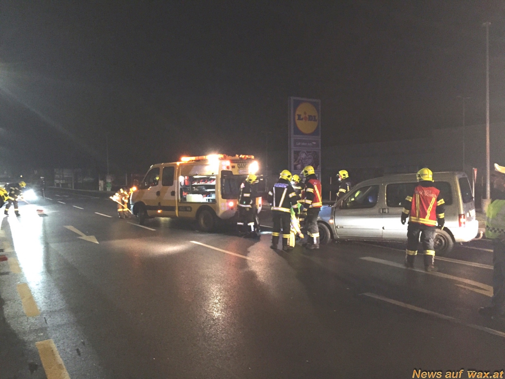 Zur gleichen Zeit fuhr eine 24-Jährige aus Wels mit ihrem Pkw samt Beifahrer auf der B1. Bei einer Zufahrt in Oberstraß wendete der 31-Jährige sein Fahrzeug und fuhr, ohne auf den Querverkehr zu achten in die Bundesstraße 1, wodurch es zu einem Zusammenstoß kam. Beide Lenker, sowie der 55-Jährige Beifahrer wurden verletzt. Die Verletzten wurden mit der Rettung in das LKH Vöcklabruck gefahren.