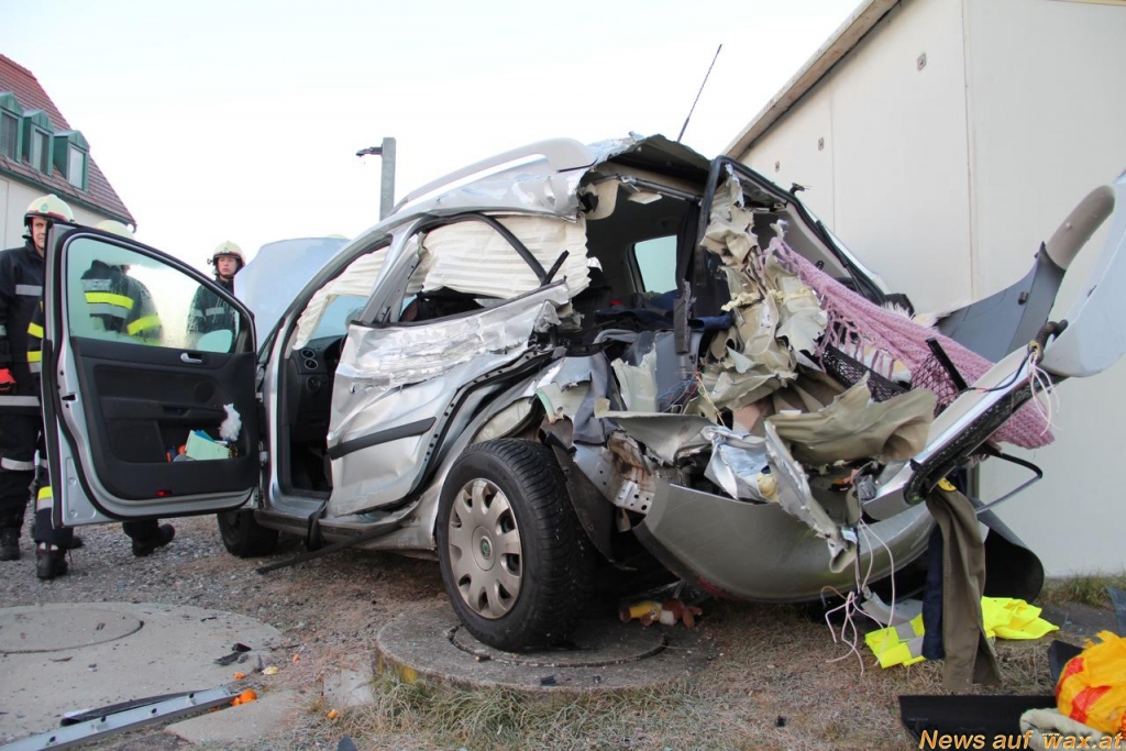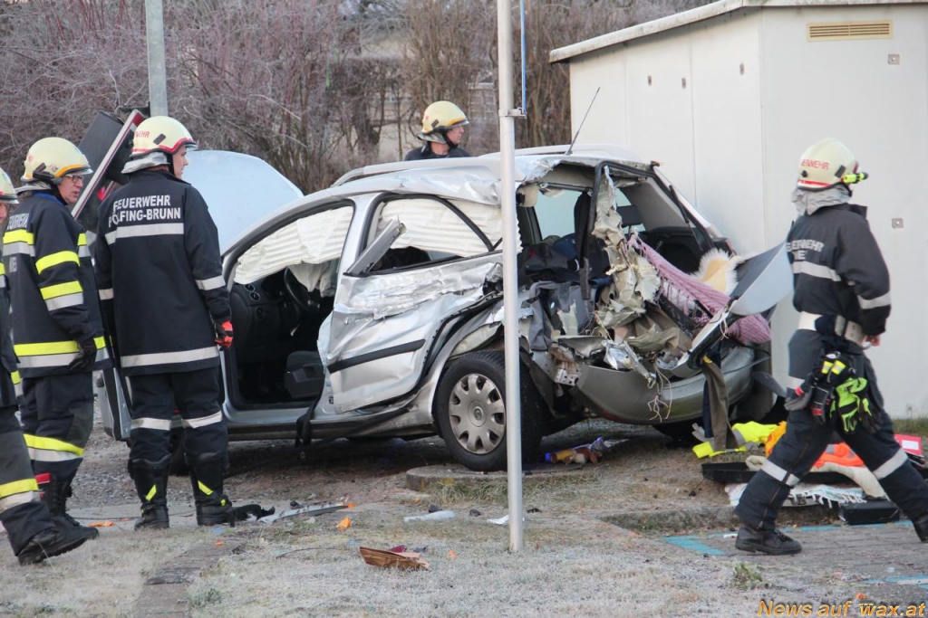 Um 7.52 Uhr wurden die Feuerwehren Pölfing-Brunn und Wies zum Verkehrsunfall mit eingeklemmter Person alarmiert. Von den ersten Einsatzkräften konnten die beiden Insassen – sie waren zum Glück nicht eingeklemmt – rasch aus dem zerstörten Auto befreit werden und wurden von Notarzt und Rotem Kreuz versorgt.