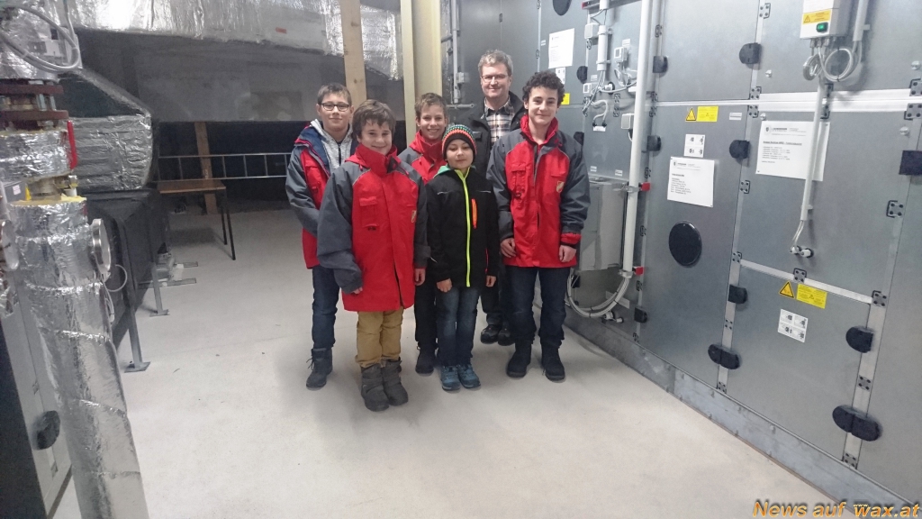 Es folgte die Besichtigung des Dachbodens, wo sich die Lüftungszentrale befindet. Herr Schlömmer erklärte den Jugendlichen, wie die Außenluft durch die verschiedenen Filter in die einzelnen Räume des Gebäudes gelangt. Besonders hob er die eingebauten Feuerklappen hervor, welche im Ernstfall verhindern, dass sich das Feuer über die Lüftung ausbreiten kann.