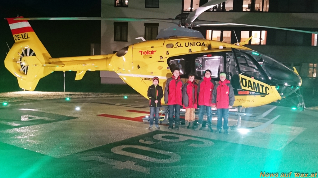 Das Highlight erfolgte gleich am Beginn der Führung, als der Rettungshubschrauber Christophorus 6 am Landeplatz zur Landung ansetzte. Dabei hatten die Jungfeuerwehrmänner die Möglichkeit den Hubschrauber zu besichtigen, sowie die Hubschrauberbesatzung zu befragen.