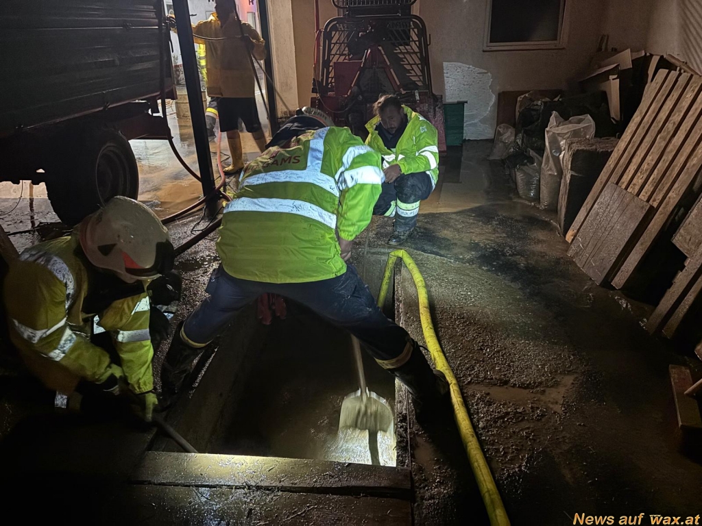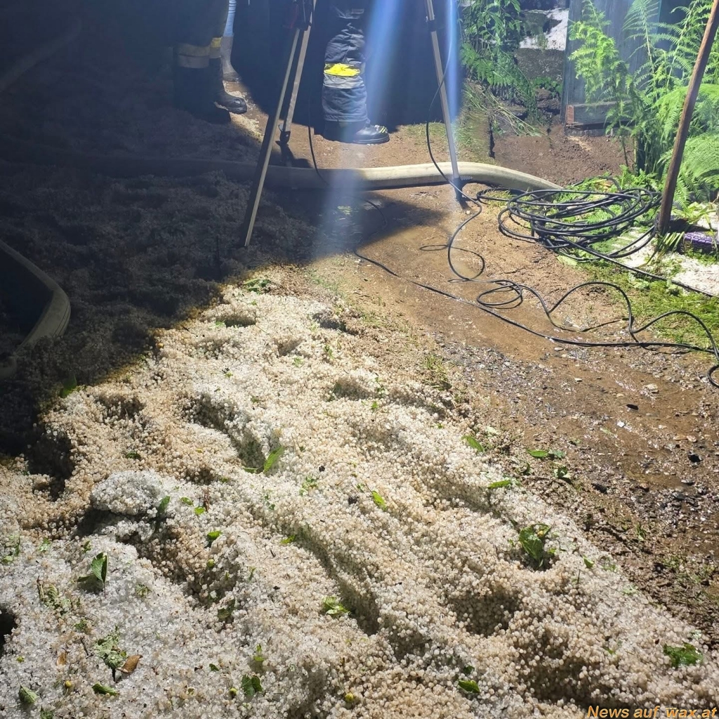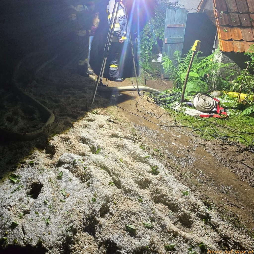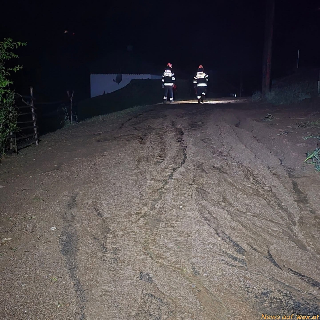 Weiters wurde die Feuerwehr Wald bei Stainz zu Unwettereinsätzen nach Niedergrail gerufen. Am Einsatzort bot sich folgendes Bild: Der Keller war durch das vorangegangene Unwetter mit einer Mischung aus Wasser und Hagel überflutet worden. Mit Hilfe von Pumpen und einer Eimerkette konnte das Wasser bzw. der Hagel Schritt für Schritt entfernt und der Keller wieder freigemacht werden. Zusätzlich wurde die angrenzende Straße durch Schlamm blockiert, weshalb die Gemeinde St. Stefan ob Stainz informiert und schweres Gerät zur Räumung angefordert wurde.