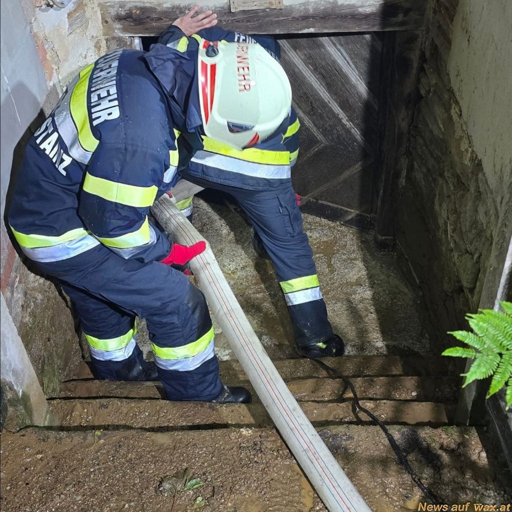 Auch wurde die Feuerwehr Stainz zu Pumparbeiten in die Kothvogelstraße gerufen. Vor Ort zeigte sich, dass rund 10 cm Wasser in den Keller eines Wohnhauses eingedrungen waren.