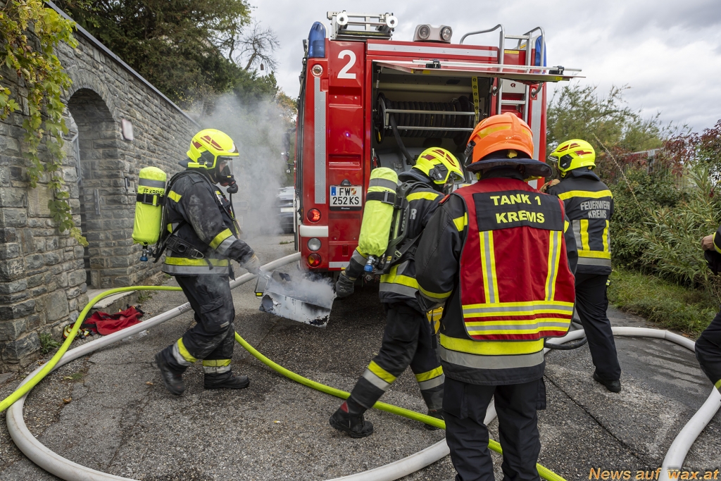 Am Sonntagnachmittag rief ein besorgter Bewohner eines Einfamilienhauses am Kremser Kreuzberg den Feuerwehrnotruf, um einen möglichen Brand in seinem Keller zu melden. Laut Aussage des Bewohners konnte er einen Feuerschein sowie eine Verrauchung wahrnehmen. Der diensthabende Disponent alarmierte umgehend die Feuerwachen Egelsee und Hauptwache zu einem Brand der Alarmstufe 2.