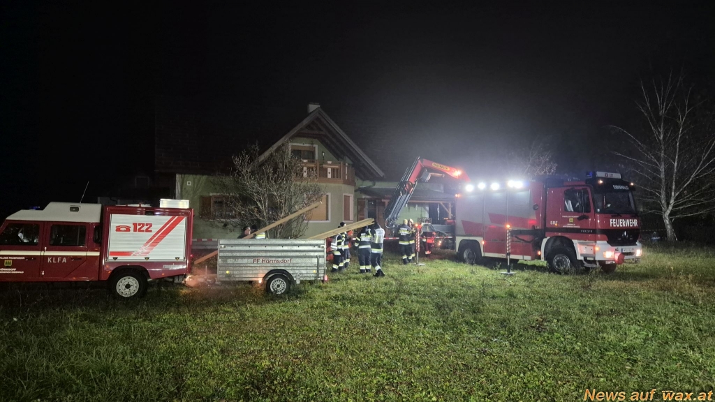 Die Freiwilligen Feuerwehren Hörsmdorf, Eibiswald und Pitschgau-Haselbach wurden um 13.45 Uhr mit dem Alarmstichwort "B07 - Gas" zu einer möglichen Gasexplosion in einem Wohnhaus alarmiert – eine Nachbarin hatte den Notruf abgesetzt. Da unklar war, ob noch Personen im Haus waren, rückten neben den drei Feuerwehren mit 38 Feuerwehrleuten ein Großaufgebot an Einsatzkräften des Roten Kreuzes sowie der Polizei an. Auch der Rettungshubschrauber wurde alarmiert, musste jedoch nicht zum Einsatz kommen.