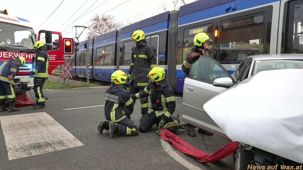 NÖ: Tribuswinkel Bezirk BADEN: Pkw prallt auf Bahnübergang gegen WLB-Badner Bahn (xxxxxxxx)