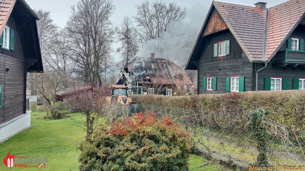 Aufgrund der starken Durchzündung musste der Dachstuhl schlussendlich mit einem Gemeindebagger abgetragen werden. Glosendes Material wurde auf den Gemeindetraktoranhänger verladen und zum Gelände des Altstoffsammelzentrums transportiert, wo es durch die eingesetzten Kräfte der FF St. Stefan ob Stainz und FF Stallhof weiter abgelöscht wurde. Die verbliebenen Atemschutztrupps waren stundenlang mit dem Bekämpfen immer wieder aufflackernder Brandstellen am Gebäude beschäftigt.