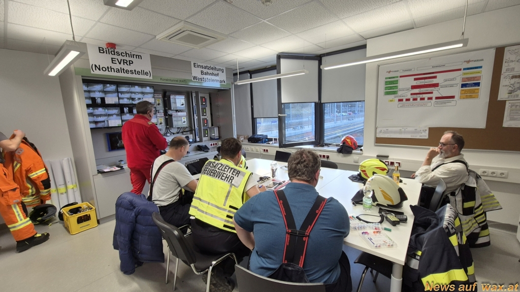 Wie vorgesehen sammelten sich die Einsatzkräfte aus dem Bereichsfeuerwehrverband Deutschlandsberg nach der Alarmierung am Bahnhof Weststeiermark, hier wurde auch die gemeinsame Einsatzleitung von ÖBB, Feuerwehr und Rettungsdienst eingerichtet. Nachdem der Service Jet der ÖBB (Rettungszug) am Bahnhof eingetroffen war, wurde dieser mit Atemschutzgeräteträgern besetzt. Zug befand sich zum Zeitpunkt der Meldung keiner im Tunnel, eine Personengefährdung konnte somit von Anfang an ausgeschlossen werden. Parallel dazu ging auch der zweite Rettungszug auf Kärntner Seite vor dem Tunnelportal mit den dortigen Feuerwehren in Stellung, um im Notfall eingreifen zu können.