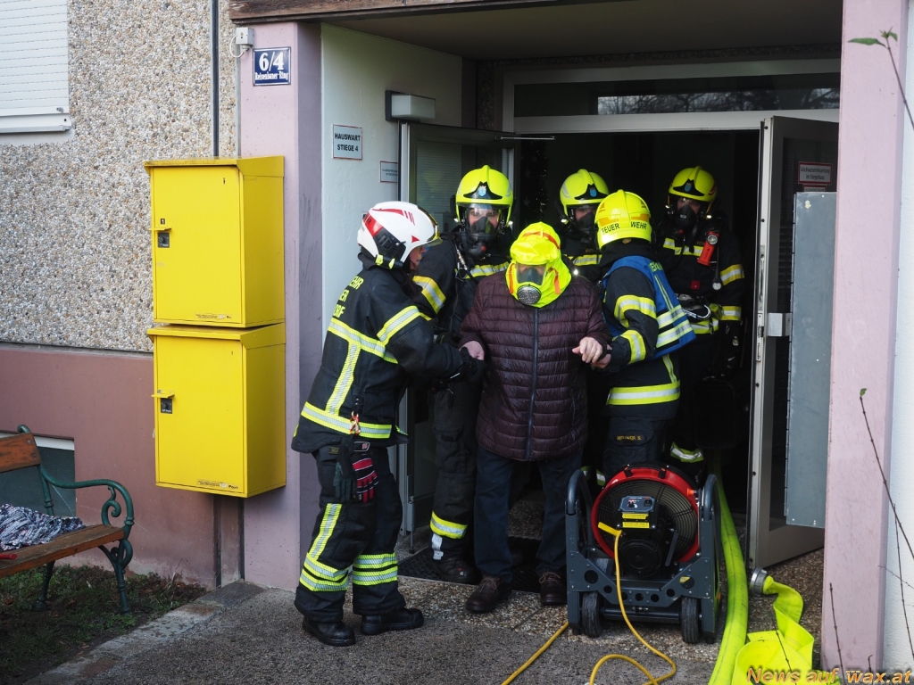 Zahlreiche Personen wurden von den eingesetzten Feuerwehren aus dem Mehrparteienhaus gerettet. Vier BewohnerInnen mussten mit leichten Verletzungen durch den Rettungsdienst ins Krankenhaus gebracht werden. Über 26 BewohnerInnen sind betroffen und mussten zwischenzeitlich im angrenzenden Kindergarten betreut werden. Die Feuerwehren sind derzeit noch mit Nachlöscharbeiten vor Ort beschäftigt.