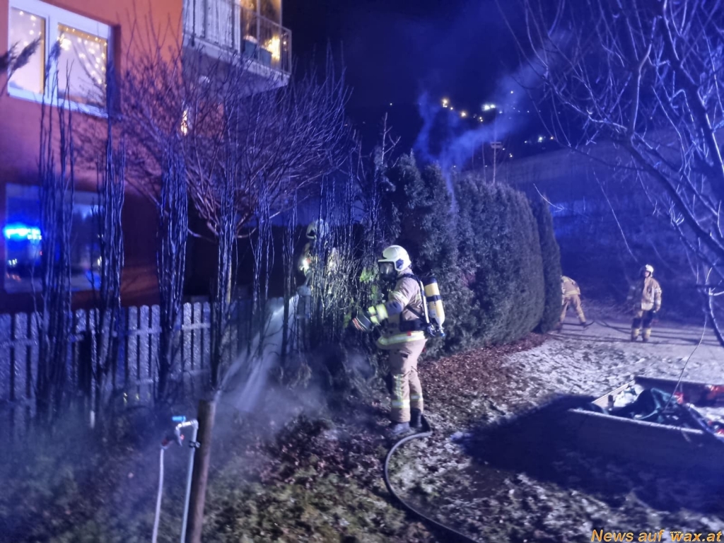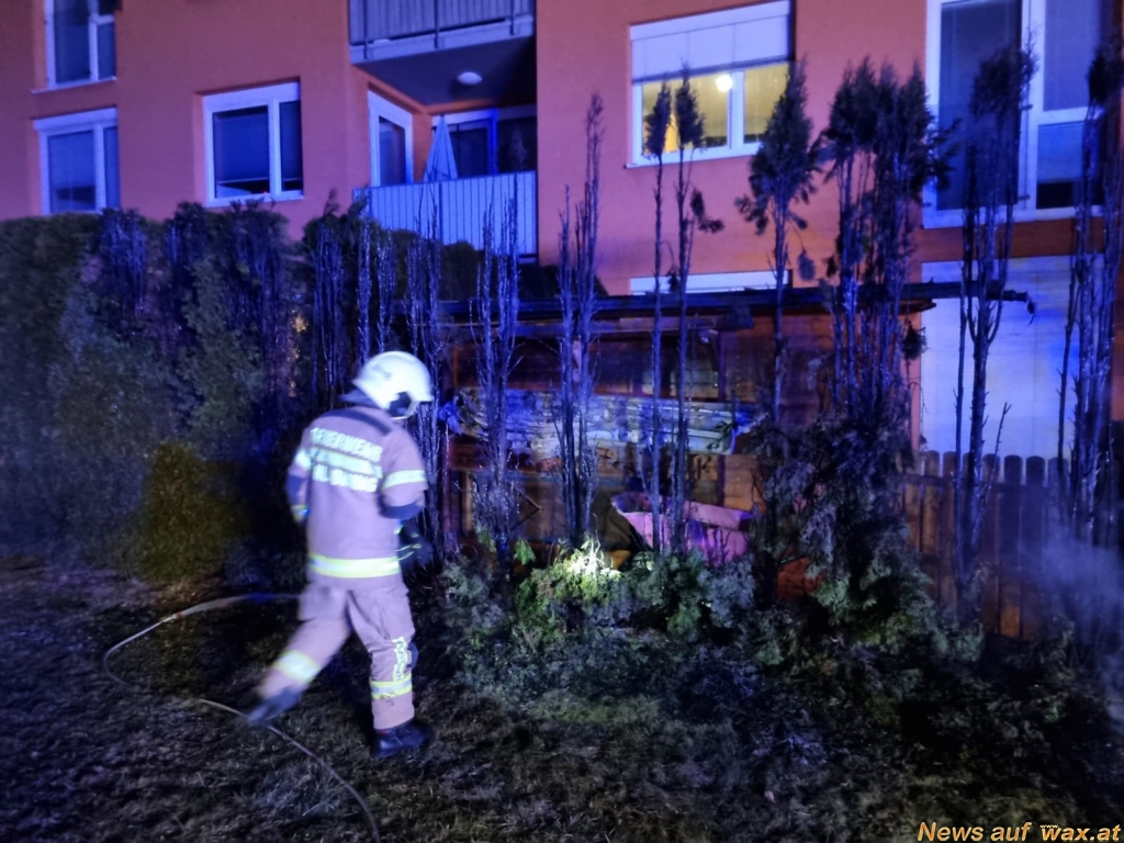Heckenbrand in der Seebacher-Siedlung (Fotos der FF Schladming anbei).