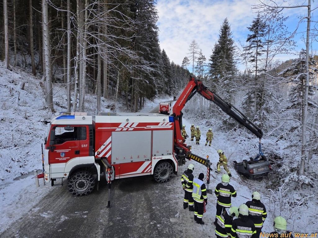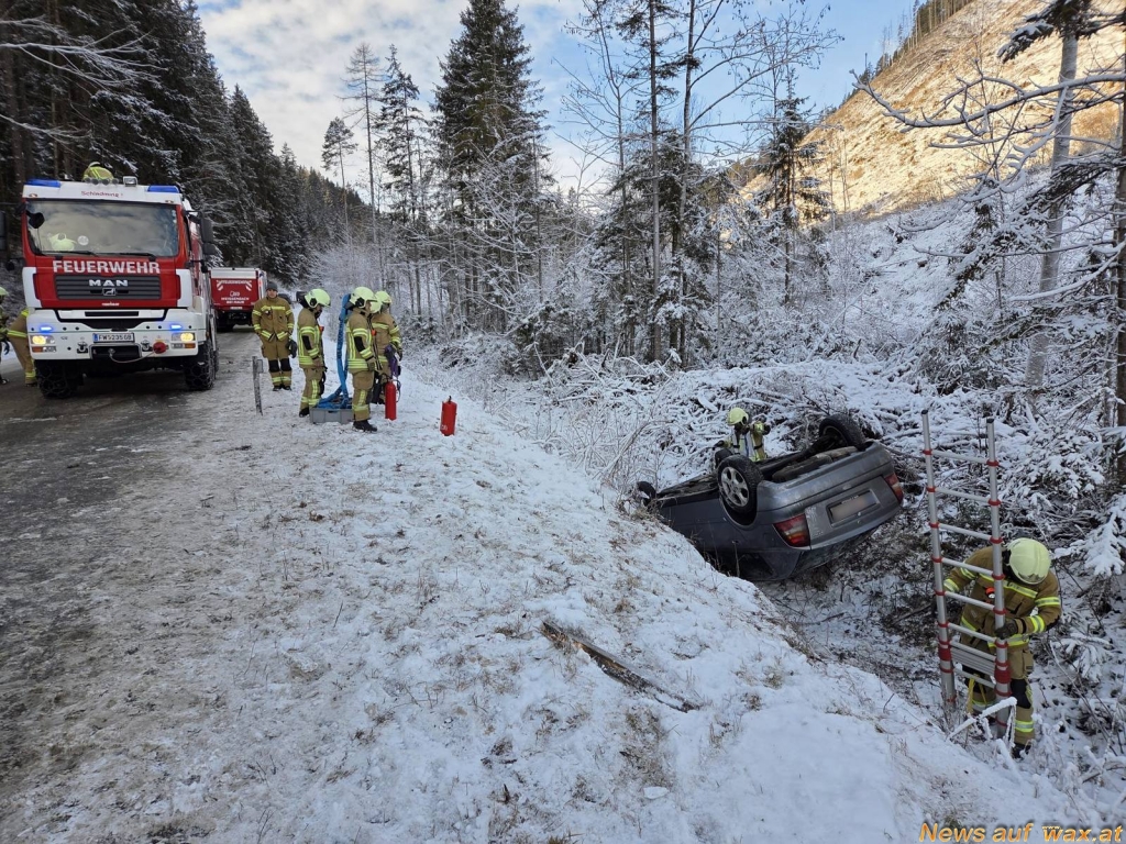 Verkehrsunfall mit einer verletzten Person auf der Rössingstraße L725 (Bilder der FF Schladming anbei).