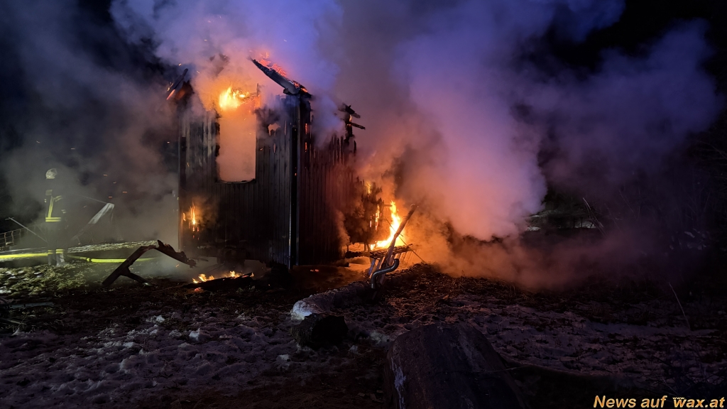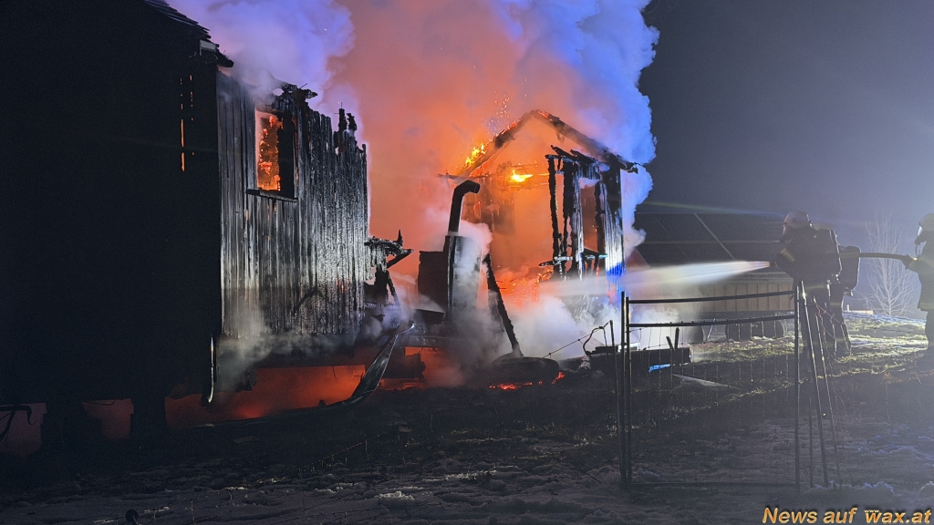 Vor Ort sorgten Temperaturen weit unter dem Gefrierpunkt für zusätzliche Hindernisse bei der Wasserversorgung. Um die Löschwasserversorgung sicherzustellen, musste ein nahegelegener Teich genutzt werden. Dieser war jedoch mit einer rund 20 Zentimeter dicken Eisschicht bedeckt, die von den Einsatzkräften händisch aufgehackt werden musste, um die Wasserversorgung sicherstellen zu können.