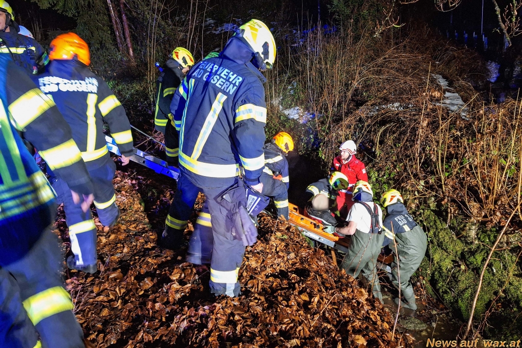 Parallel dazu wurde die Einsatzstelle rasch ausgeleuchtet und die Personenrettung mittels Steckleiter und Schleifkorbtrage vorbereitet. Die Person konnte sodann schonend aus dem Bachbett gerettet werden. Die weitere Versorgung des Patienten und der Transport ins Krankenhaus erfolgte durch das Rote Kreuz Bad Goisern.