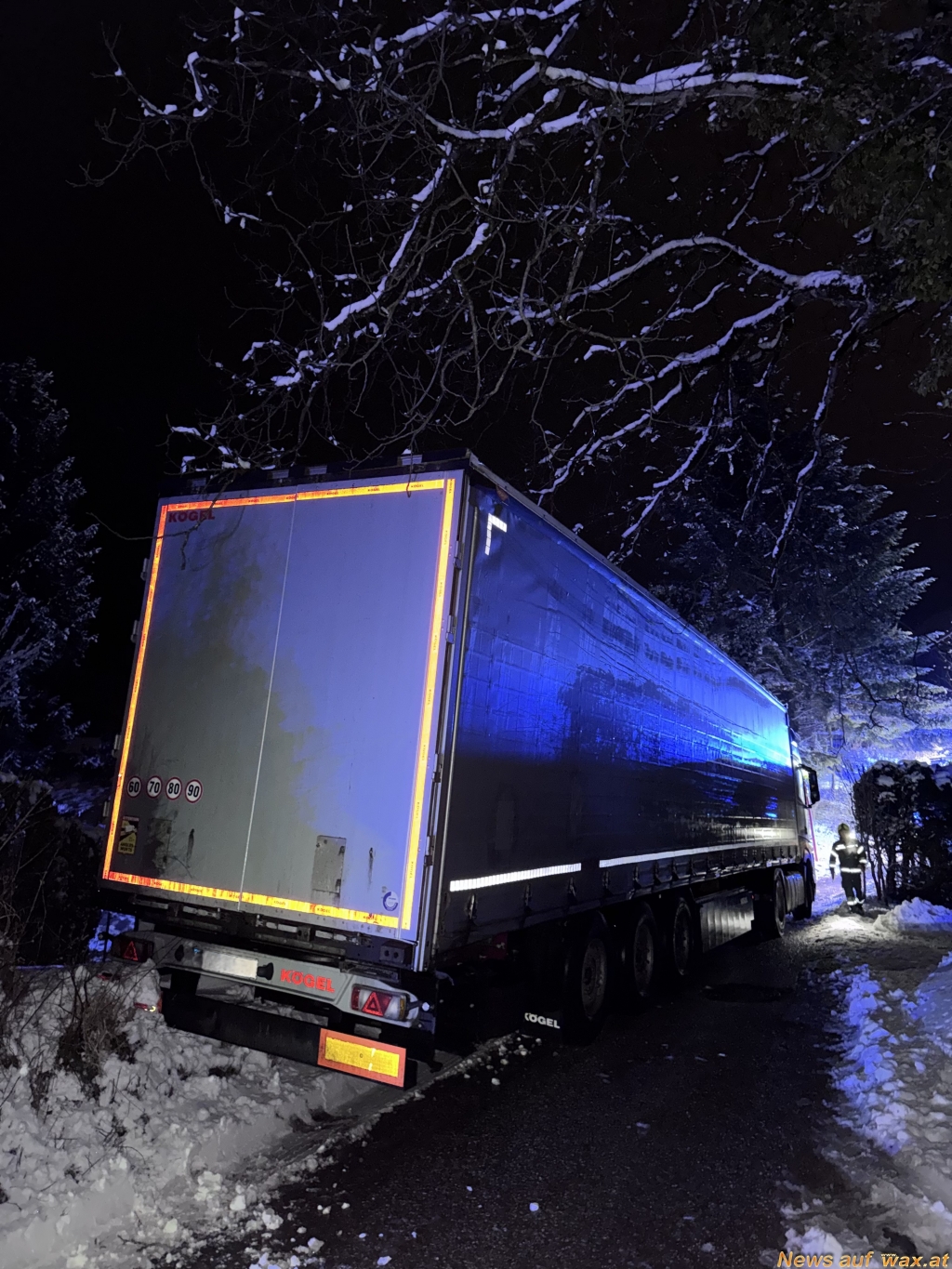 Der Lenker bugsierte den Hängerzug beim Versuch wieder retour zu schieben über das Bankett wo er in weiterer Folge hängen blieb und keine weiterkommen mehr möglich war.
