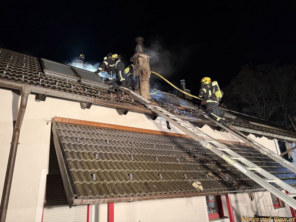 Kurz nach Mitternacht auf dem 25. Februar 2026 wurde der Hausbesitzer plötzlich von einem lauten Knall aufgeschreckt und hielt Nachschau. Meterhohe Flammen loderten aus dem Dachstuhl rund um den Kamin des Wohnhaus . Sofort informierte er den Sohn und seine Ehefrau die den Notruf bei der Feuerwehr absetzte.