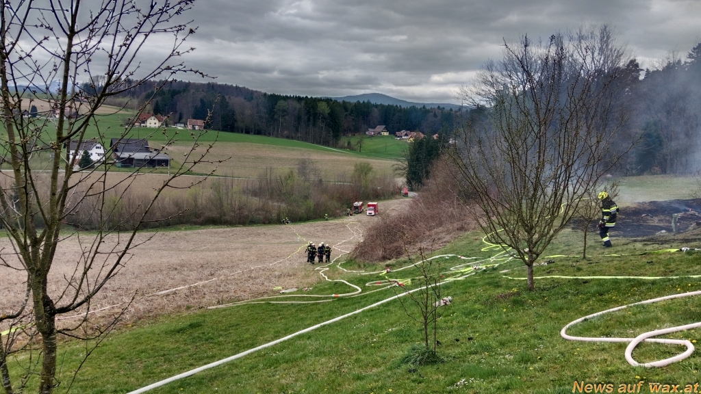 Um die Wasserversorgung sicherstellen zu können, wurde eine Zubringleitung vom nahegelegenen Rassachbach aufgebaut und auch ein Hydrant wurde als Wasserbezug herangezogen. Weil das alles aber für den hohen Löschwasserbedarf nicht ausreichte, musste zusätzlich noch Wasser mit Hilfe von Pendelverkehr an die Einsatzstelle gebracht werden.