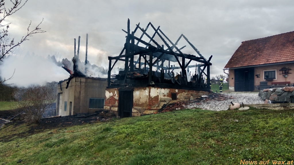 Ein Wirtschaftsgebäude in Lasselsdorf in der Marktgemeinde Stainz im Bezirk Deutschlandsberg ist kurz nach 12.30 Uhr niedergebrannt. Verletzt wurde zum Glück niemand.
