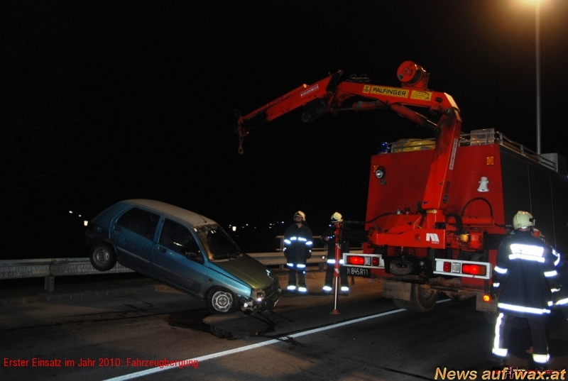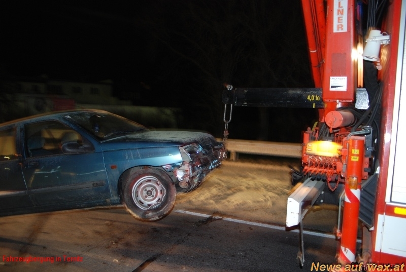 Am Dienstag den 05. Jänner wurde die Feuerwehr Ternitz St.Johann gegen 03:13 Uhr ihrem Ersten Einsatz in Neuen Jahr, einer Fahrzeugbergung gerufen. Im Bereich der Bahnüberführung beim Theodor Körner Platz kam aus bisher unbekannter Ursache ein PKW der Marke Renault, nachdem dieser ein Verkehrszeichen niedermähte, mit dem Heck auf die Leitschiene, schlitterte rund 40 Meter auf dieser weiter und verblieb dann in der Lage.