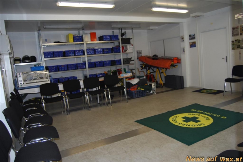 Im ersten Stock wird das Schulungszentrum durch eine voll ausgestattete Küche, Garderobenraum, einen Theoretischen Schulungsraum und weiteren Sanitärräume komplettiert. Die Ausstattung umfasst neben Vollklimatisierung und Heizung natürlich die benötigten Materialien für die Ausbildung von Rettungssanitätern, laufende Fortbildungen für alle Mitarbeiter sowie die Breitenausbildungen im Bereich der Ersten Hilfe.