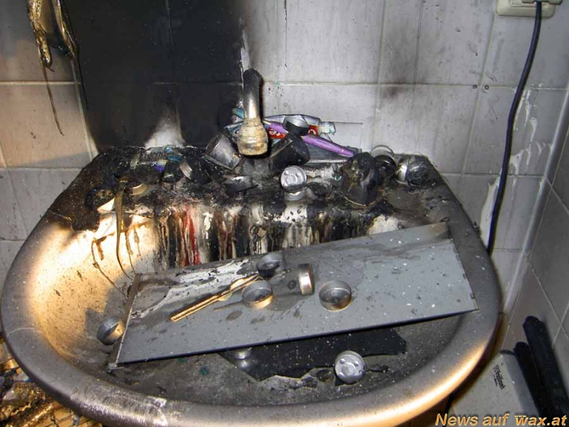 Sofort nach dem Eintreffen am Einsatzort ging ein Atemschutztrupp der Feuerwehr Wimpassing mit Handfeuerlöscher und Wärmebildkamera in das Brandobjekt vor, und begann mit der Personensuche. Nachdem keine eingeschlossenen Personen in der Wohnung vorgefunden wurden, wurden die Glutnester im Bereich des Badezimmers abgelöscht. Das Stiegenhaus wurde mittels einem „mobilen Rauchverschluss“ rauchfrei gehalten. Die verrauchte Wohnung wurde mittels Belüftungsgerät entraucht.