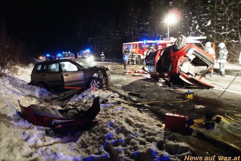 Ein schwerer Verkehrsunfall mit zwei PKW führte am 21.01.2010 um ca. 18 Uhr zu einem Feuerwehreinsatz auf der Gailtalstraße (B111) zwischen St. Paul/Gailtal und Emmersdorf.