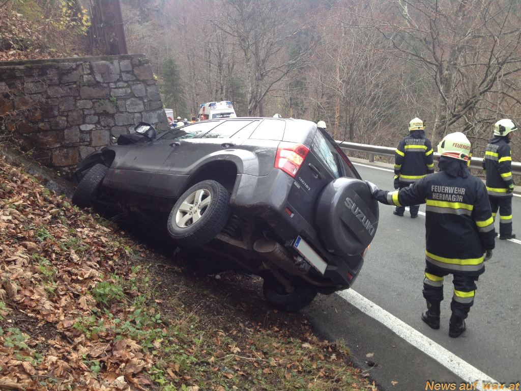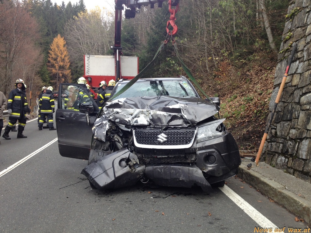 Auf der Nassfeldstraße (B 90) bei Tröpolach (Stadtgemeinde Hermagor – Pressegger See, Bezirk Hermagor) ist am 13.11.2013, kurz vor 12.00 Uhr, ein PKW frontal mit einer Stützmauer kollidiert. Der Lenker erlitt Verletzungen unbestimmten Grades.