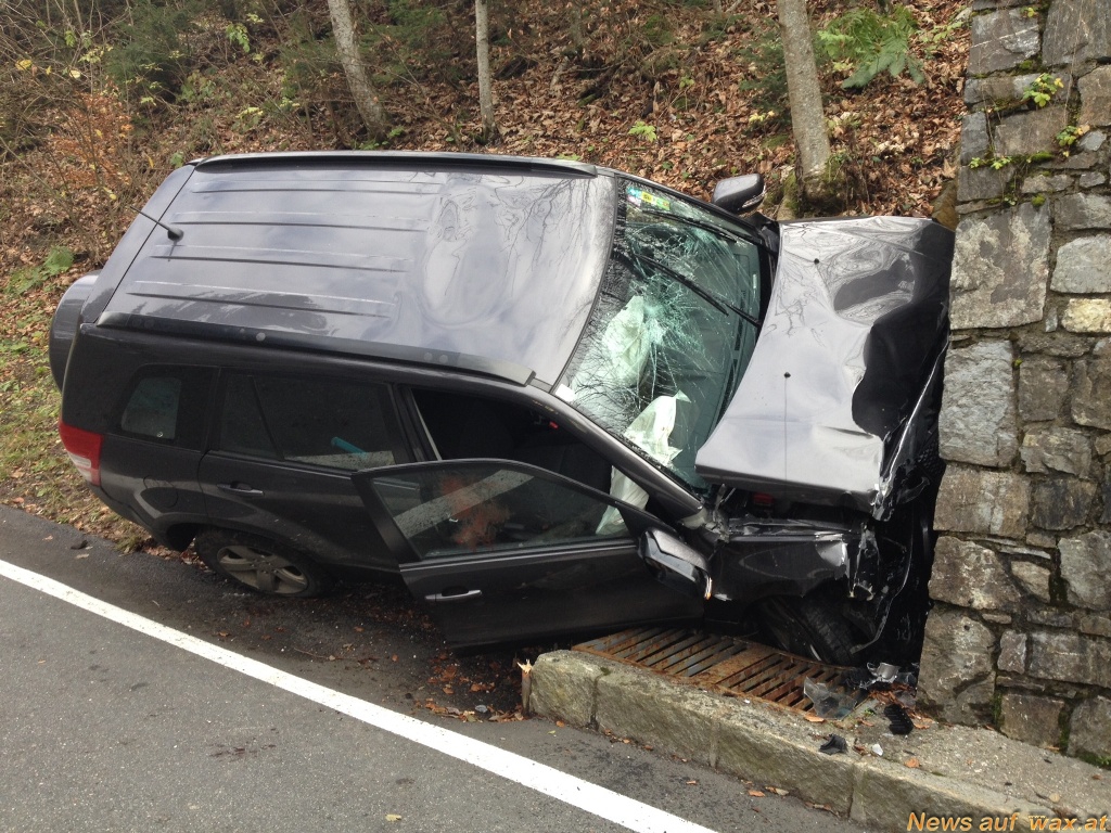 PKW kollidierte frontal mit Stützmauer (xxxxx)