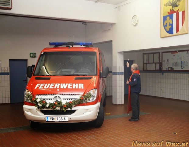 Nach einer kurzen Ansprache und einer Gedenkminute, für den kürzlich verstorbenen Ehrenkommandanten Friedrich Obermayr, wurde das neue Mannschaftstransportfahrzeug (MTF) durch den Feuerwehrkuraten Mag. Josef Kampleitner gesegnet.
