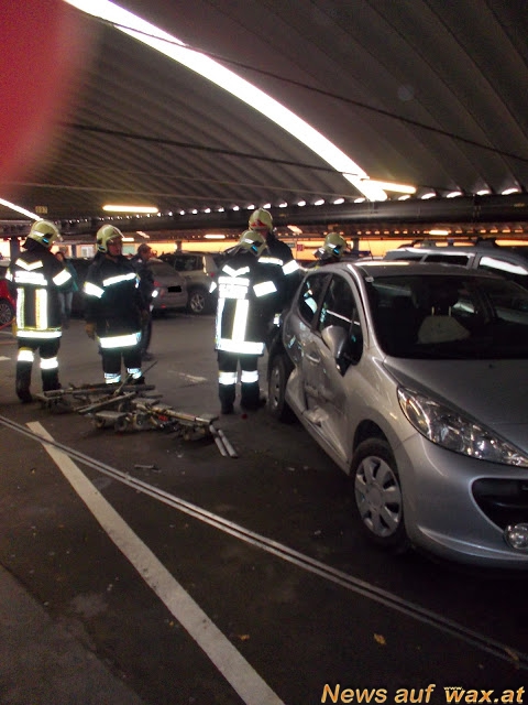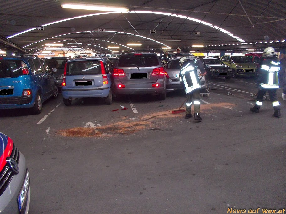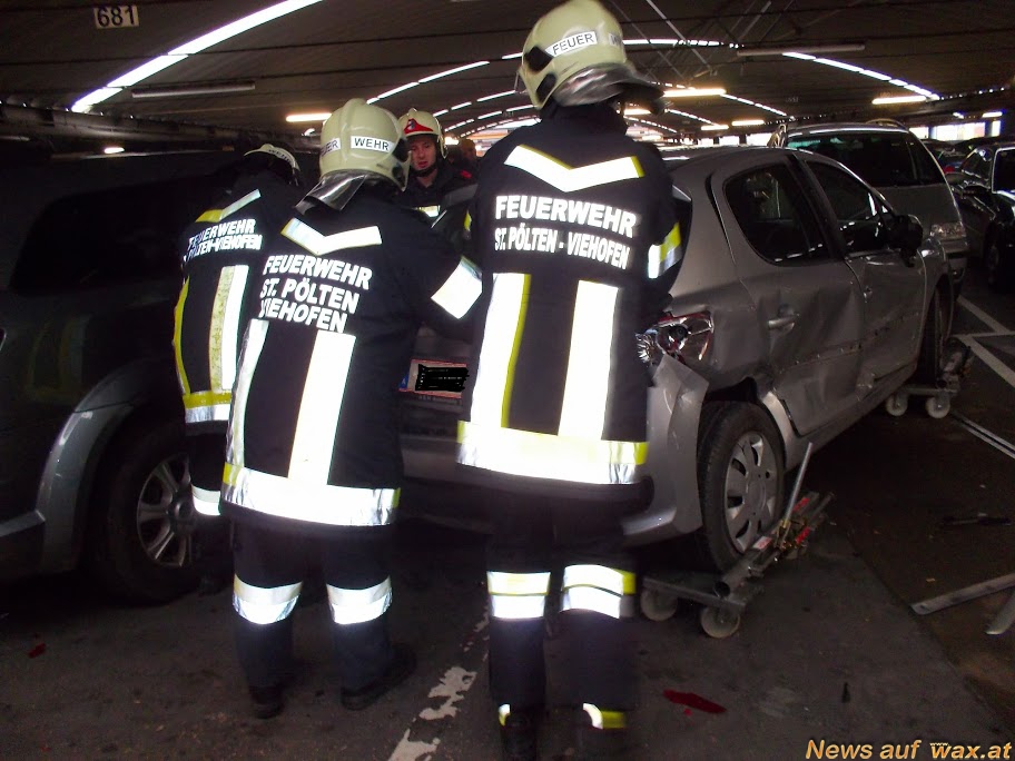 Verkehrsunfall mit mehreren Fahrzeugen am Parkdeck des EKZ Traisenpark (xxx)