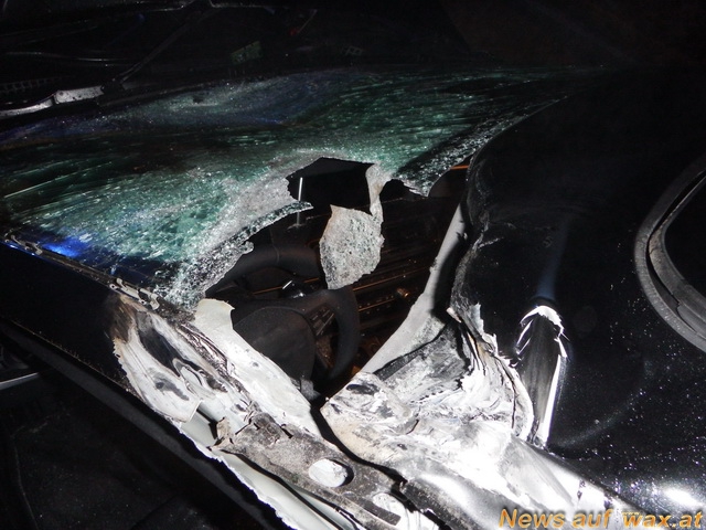 Aus bislang unbekannter Ursache war die Kranstütze auf der Fahrerseite des fahrenden LKW´s ausgefahren und ragte somit in den Gegenverkehr. Der aus Steyr kommende BMW Lenker passierte bei Dunkelheit den LKW wobei er plötzlich die Kranstütze frontal mitnahm und abriss. Durch die Wucht des Anpralles riss die Stütze ab und schlug zwischen Windschutzscheibe und Fahrzeugdach neben dem Kopf des Lenkers ein Loch, ehe sie im Acker landete. Der guten Reaktion des Fahrers ist es zu verdanken, dass er nicht von der Fahrbahn abkam und in den Straßengraben fuhr. Glücklicherweise kam auch kein Verkehr entgegen.