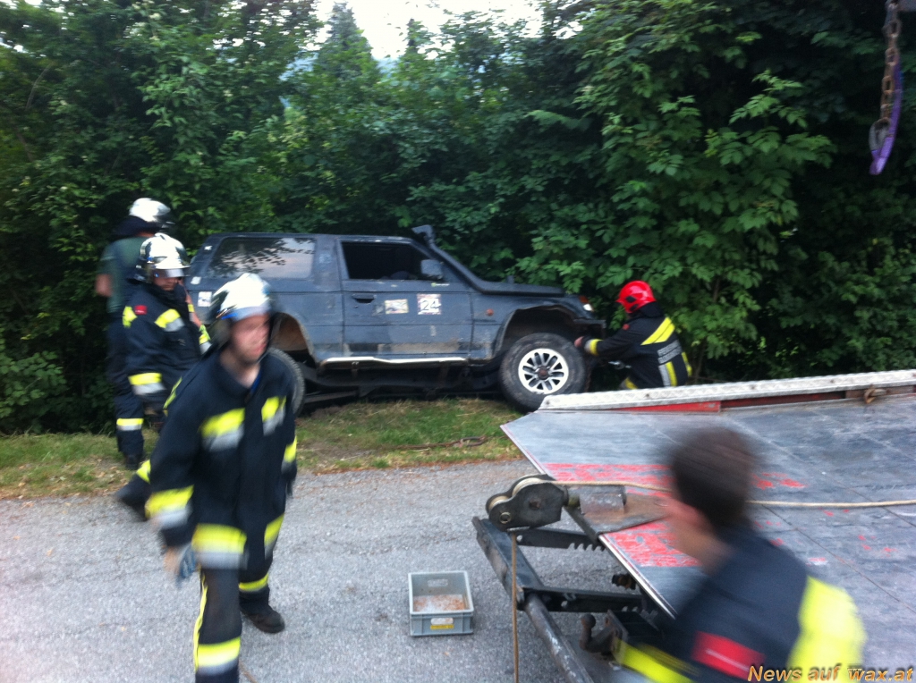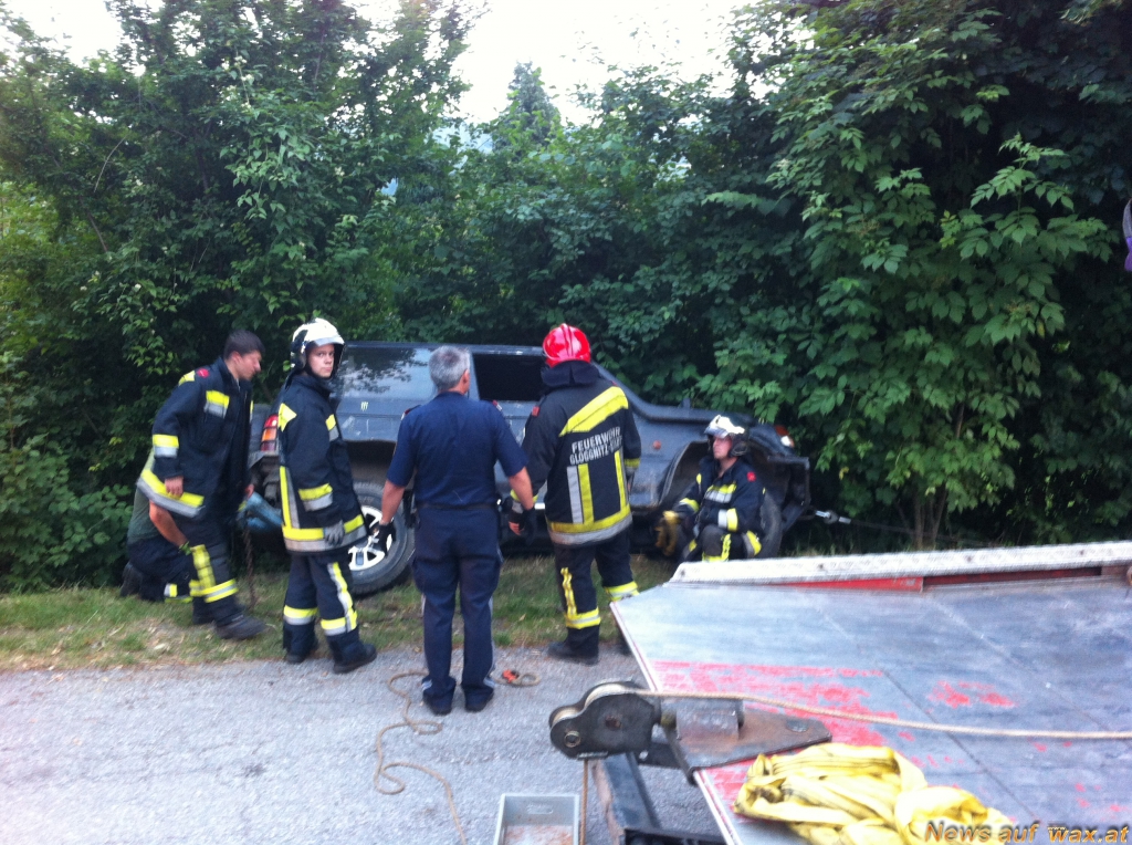Die Fahrzeugbergung wurde dann mittels dreier Seilwinden von der Feuerwehr Gloggnitz Stadt übernommen.