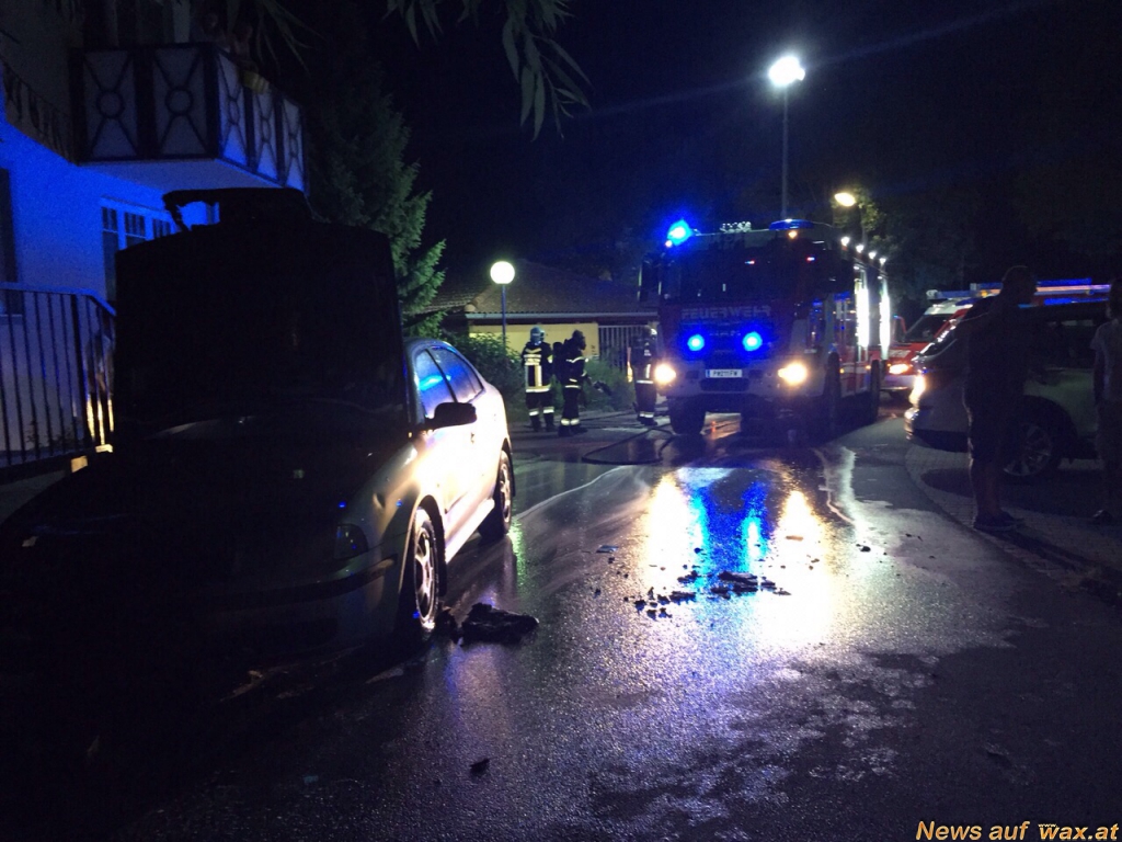 Der Einsatzleiter der örtlich zuständigen Feuerwehr Viehofen stellte bei der Lageerkundung fest, dass ein vor der Eingangstüre einer Wohnhausanlage abgestellter Pkw im Motorbereich zu brennen begann. Durch die starke Rauchentwicklung zog ein Teil der giftigen Rauchgase in das Gebäudeinnere und lösten so die installierte Brandmeldeanlage in Verbindung mit dem Räumungsalarm aus.