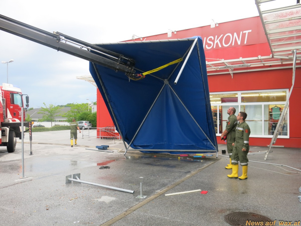 gewaltigen Sturm stürzten Werbetafeln, Zelte und Bäume um.