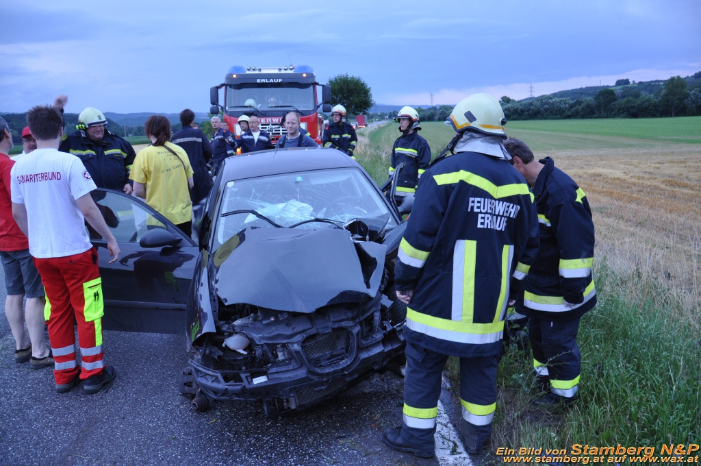 Ein PKW, aus Richtung Ybbs kommend, prallte gegen einen am Straßenrand stehenden Baum und wurde wieder auf die Fahrbahn zurückgeschleudert.
