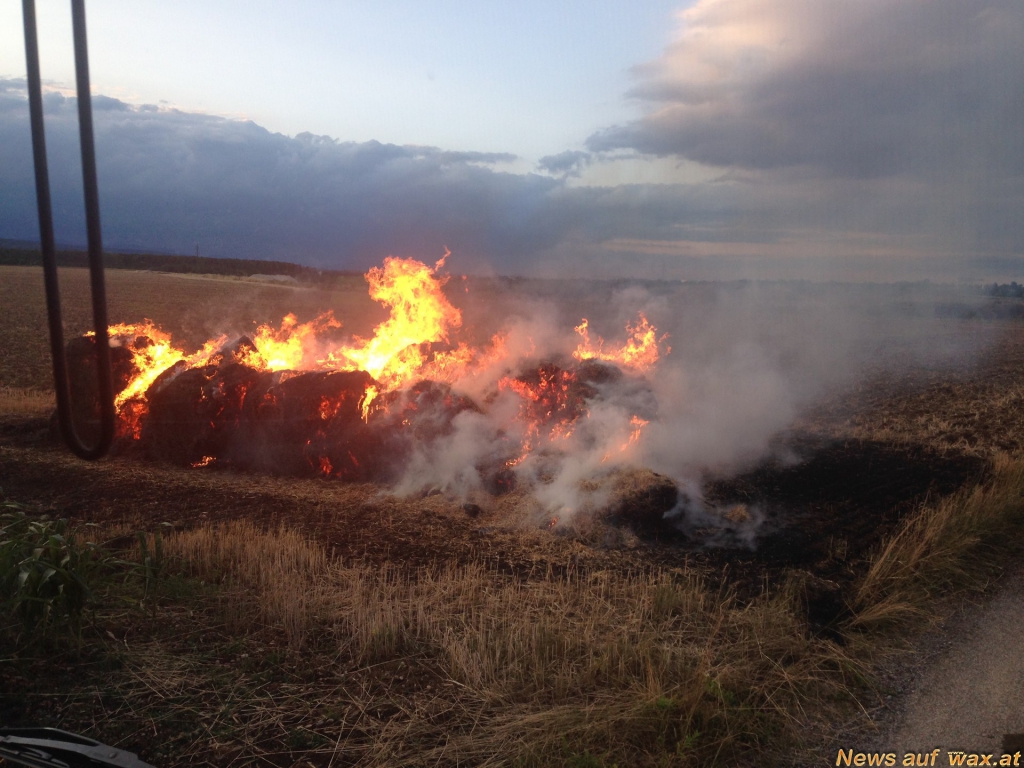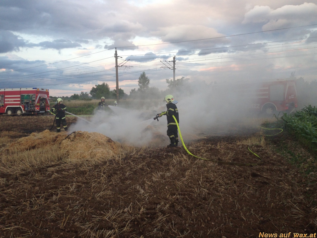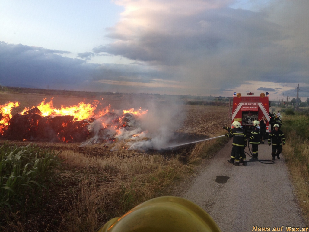 Mehrere Anrufer meldeten von der Autobahn aus einen Flurbrand. Auch seitens der ÖBB wurde der Brand auf einem Feld neben der Südbahnstrecke auf Höhe Metro gemeldet. Kurz nach 20 Uhr - keine drei Minuten nach den ersten Notrufen - rückte die Feuerwehr Wiener Neustadt mit den beiden Großtanklöschfahrzeugen aus. Schon bei der Anfahrt auf der B17 war die Rauchsäule ersichtlich. Zehn Strohtristen aus Stroh von 2 ha Feld standen im Vollbrand. Sofort wurde mit den Löscharbeiten begonnen, um die Flammen niederzuschlagen.