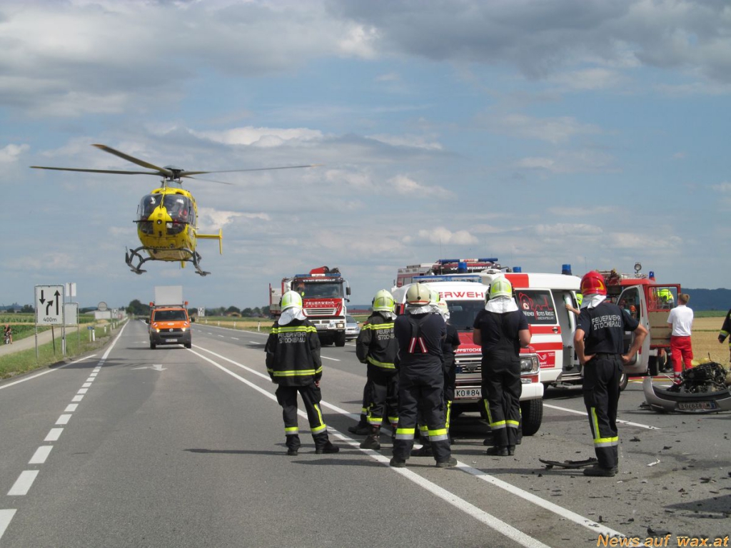 Bei dem Aufprall wurden beide PKW-Insassen eingeklemmt, der Fahrer erlag noch am Unfallort seinen schweren Verletzungen. Die Beifahrerin konnte von der FF-Seitzersdorf-Wolfpassing, der FF-Stockerau und von den bereits vor Ort befindlichen Einsatzkräften des Roten Kreuzes und einer zufällig am Einsatzort vorbeikommenden Ärztin erstversorgt und betreut werden.