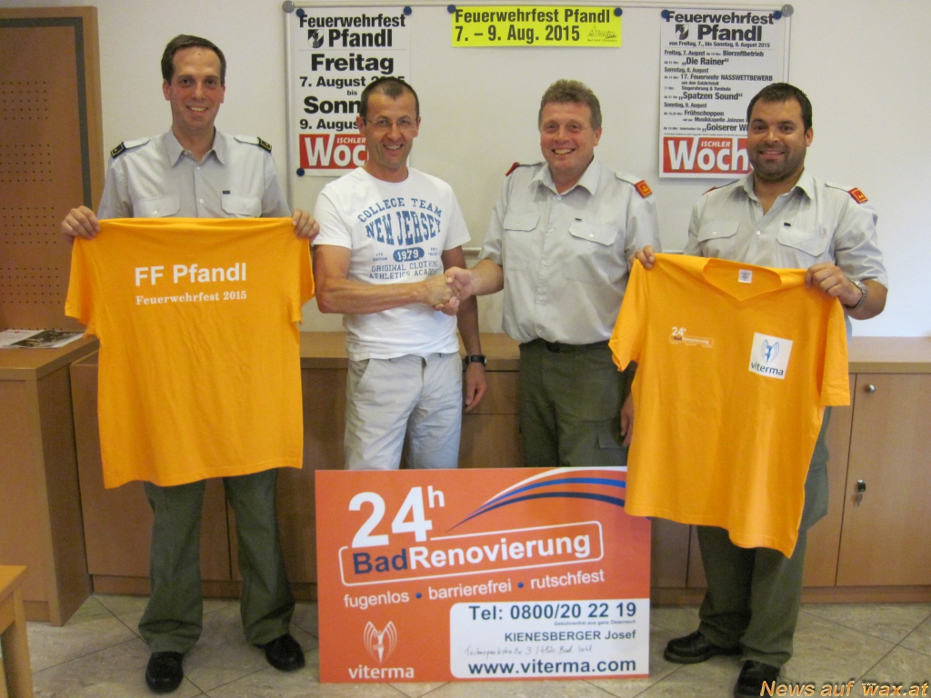 Die T-Shirts für alle Mitarbeiter zum 126. Feuerwehr-Fest der FF-Pfandl vom 7. bis 9. August 2015 wurden heuer von Josef Kienesberger, Viterma Lizenzpartner zur Verfügung gestellt.