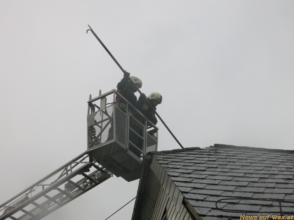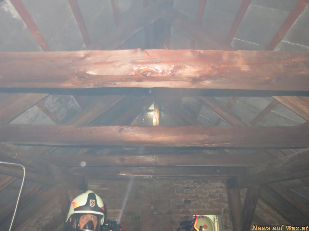 Unter schwerem Atemschutz wurde sofort mit einem HD-Rohr ein Innenangriff vorgenommen um ein Übergreifen auf den weiteren Dachstuhl verhindern zu können. Nach etwa zehn Minuten konnte bereits ,,Brand aus" gegeben werden. Das Dach wurde noch über die Drehleiter abgesichert und mit der Wärmebildkamera kontrolliert ob sich irgendwo noch weitere Glutnester befinden. Nach etwa einer Stunde war der Einsatz dann beendet und die Stadtfeuerwehr konnte wieder ins Feuerwehrhaus einrücken. Die Einsatzbereitschaft wurde wieder hergestellt.