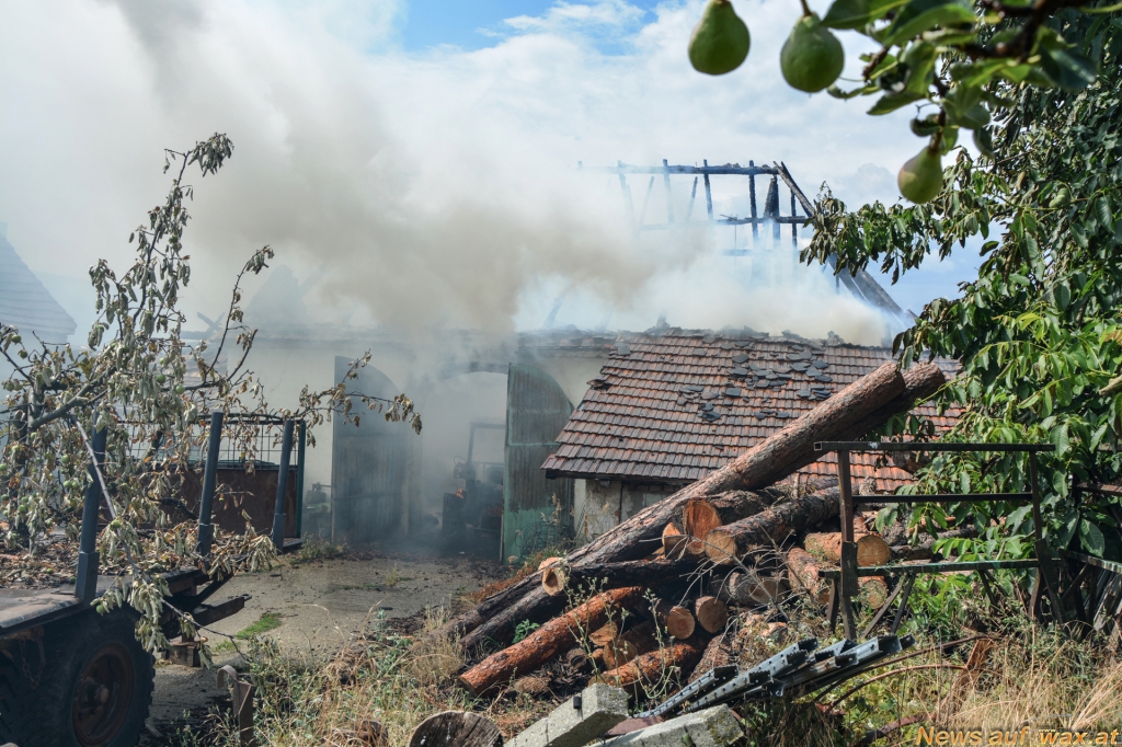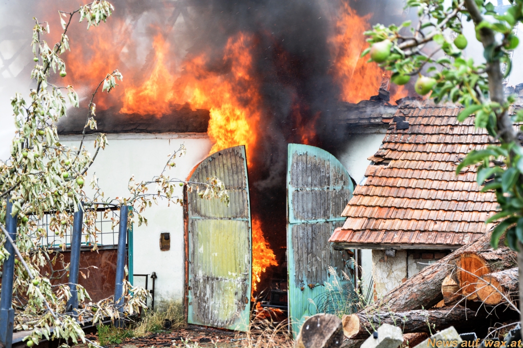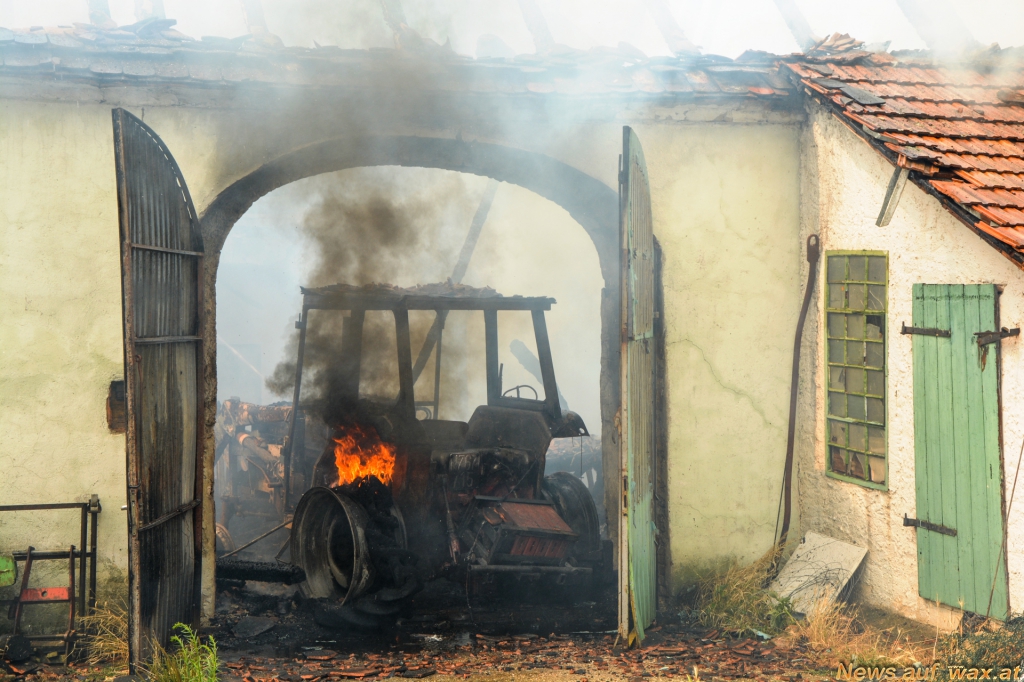 Eine Scheune in Obermarkersdorf (Bezirk Hollabrunn, Nähe Retz) stand in Vollbrand, die Rauchsäule war bereits von weitem zu sehen. Gleich zu Beginn übernahmen die Feuerwehrkameraden zunächst den Schutz des angrenzenden Wohnhauses und konnten dieses somit erfolgreich gegen die Flammen verteidigen.