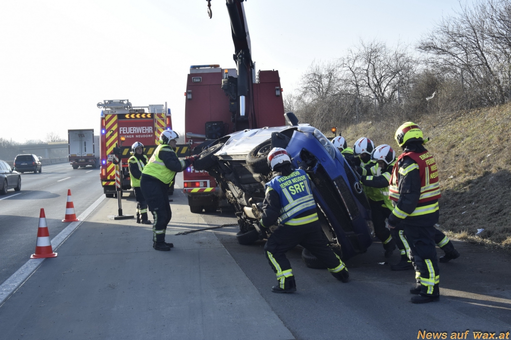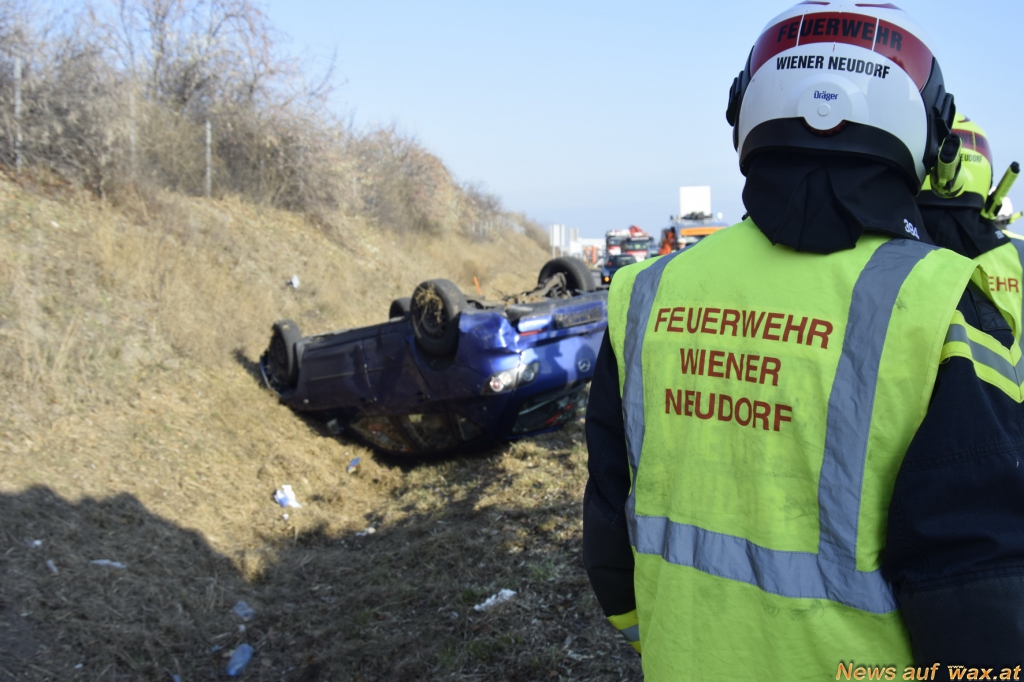 In den Mittagsstunden des 16. Dezembers 2016 rückten drei Fahrzeuge und 13 Mann der Freiwilligen Feuerwehr Wiener Neudorf zu einer Fahrzeugbergung nach einem Überschlag auf der Südautobahn aus.