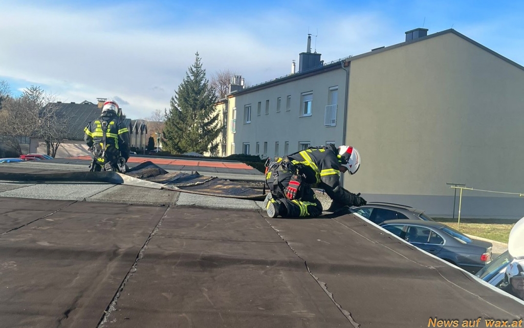 Auf einem Bürogebäude eines Gewerbebetriebes waren Teile der Lüftungsanlage durch die starken Windböen in Gefahr. Die Wiener Neudorfer Einsatzkräfte reagierten schnell und setzte Maßnahmen, um mögliche Schäden zu verhindern.
