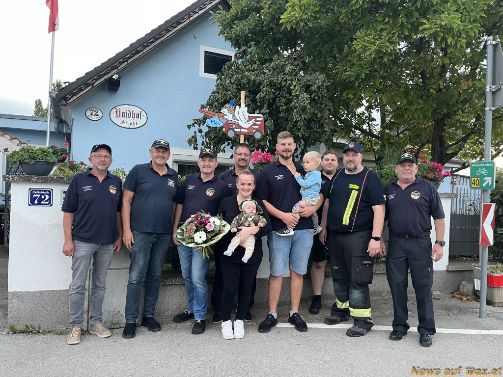 Am 22. September 2025 gegen 18:30 Uhr begrüßte eine Gruppe von Leesdorfer Feuerwehrmänner den neugeborenen Sohn Max von Oberfeuerwehrmann Patrik Spielauer mit einem „Feuerwehrstorch“.