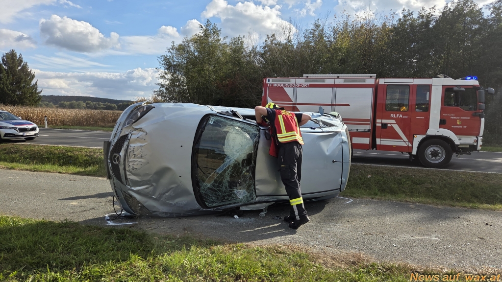 Erstellt am 16.10.2025 12:02:35 (6 mal gelesen) | Am heutigen Nachmittag kam es auf der L 116 zwischen Mogersdorf und Weichselbaum zu einem Zusammenstoß zwischen einem PKW und einem Hirsch. Das Fahrzeug kam dabei seitlich zum Liegen und die Lenkerin wurde dabei verletzt und vom Roten Kreuz nach der Erstversorgung ins Spital gebracht. Die Feuerwehr Mogersdorf-Ort führte die Bergearbeiten durch.